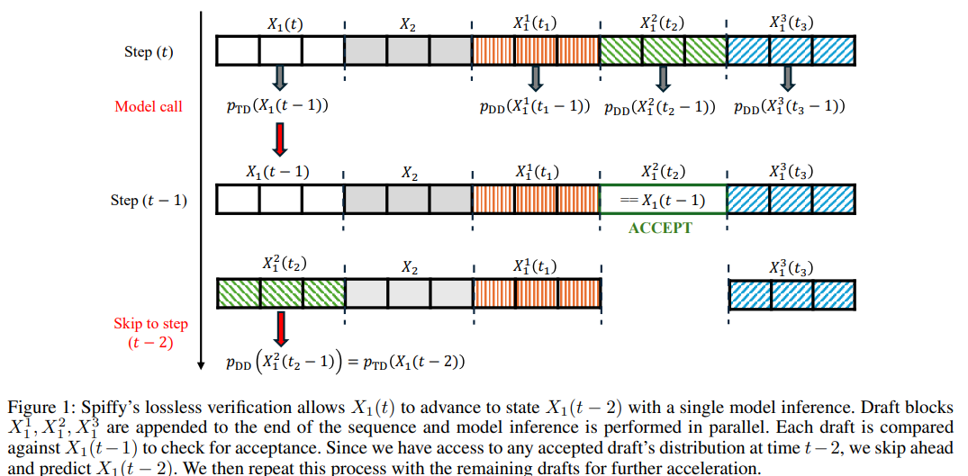 Adapts speculative decoding to diffusion-based language models, achieving lossless acceleration by exploiting the iterative denoising structure of diffusion LLMs to propose and verify token blocks efficiently.
