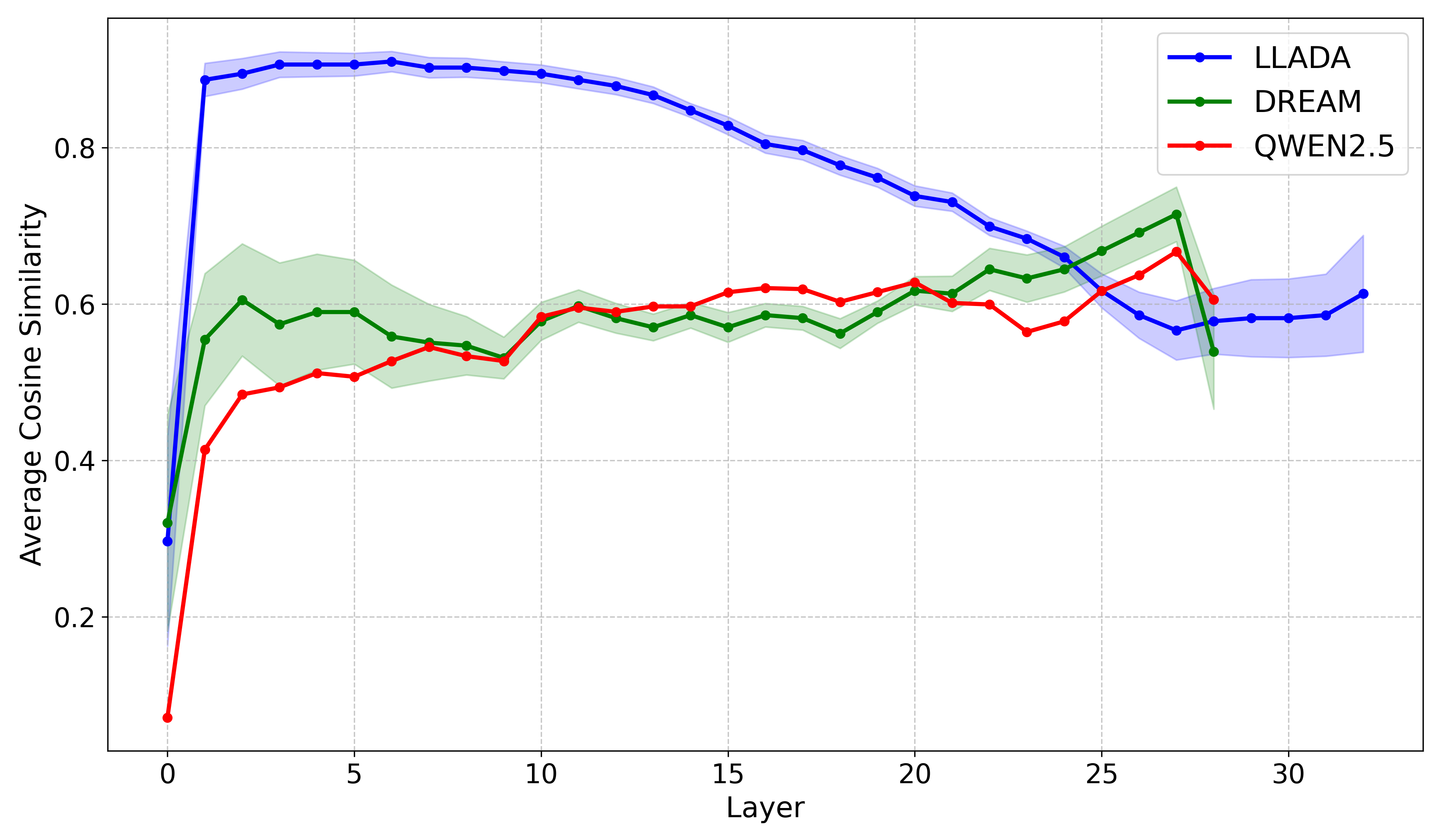 Investigates the representation structure of diffusion vs. autoregressive LLMs and how layer-skipping at inference time can be leveraged to accelerate generation without sacrificing output quality.